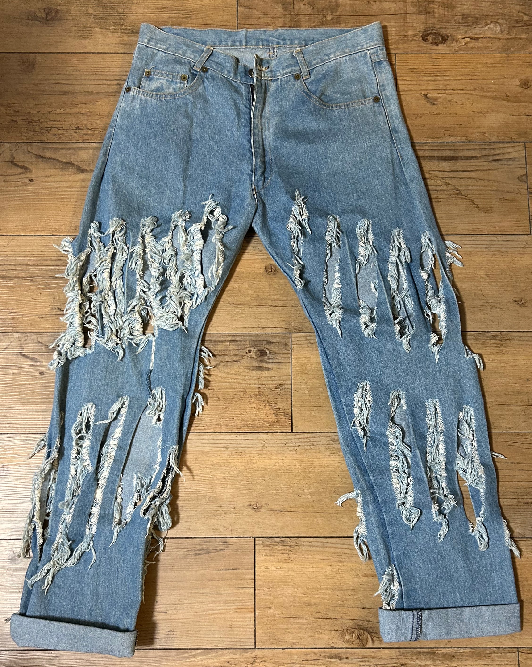 男性が戦場に出かけて、帰ってきた時には、服がスラッシュド=剣で切り裂かれている、という話で、それをデニムなどを使うことで現代的な解釈にしたコレクションです。