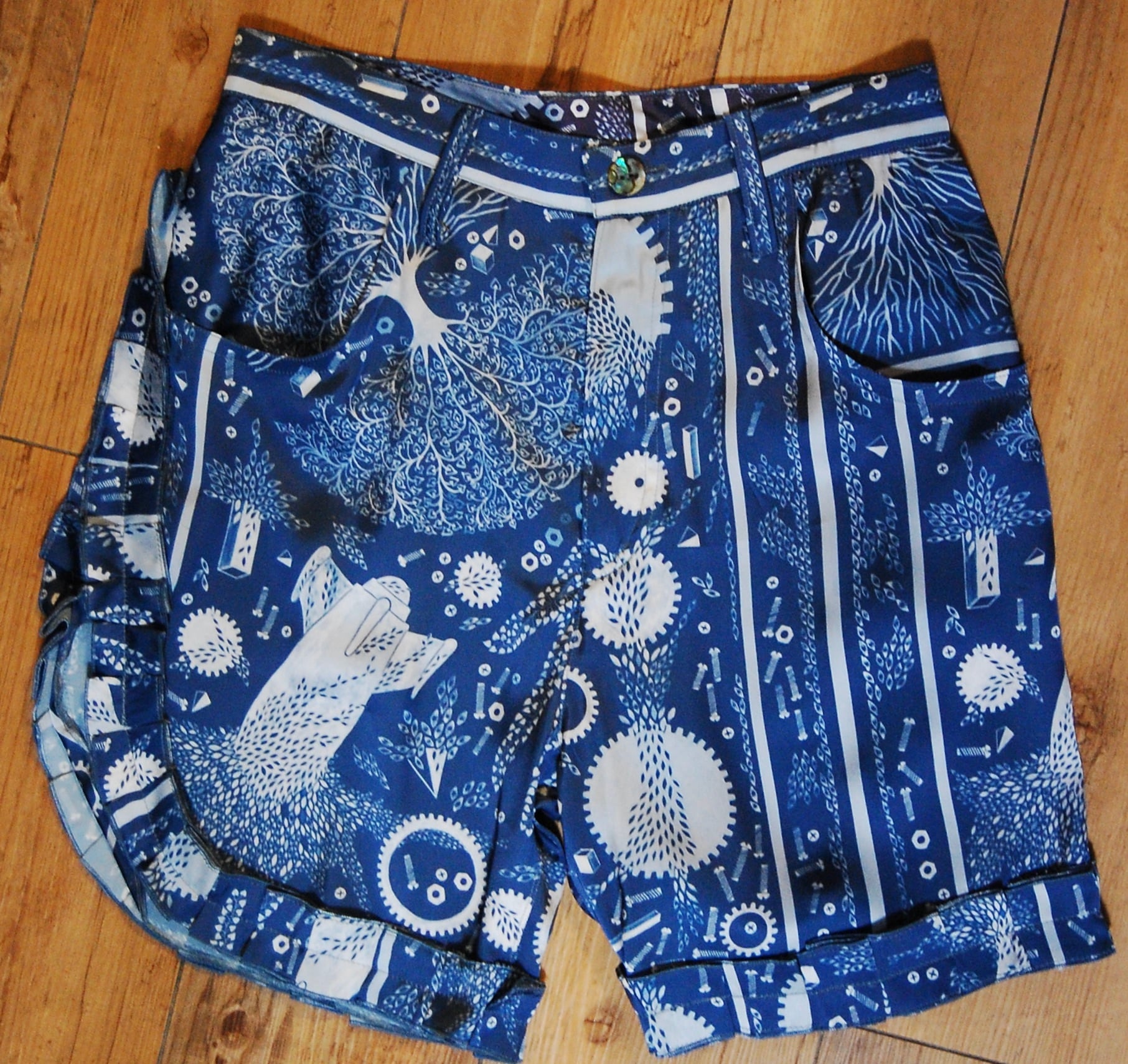 オリジナル図案「アニミズム柄」のショートパンツ。