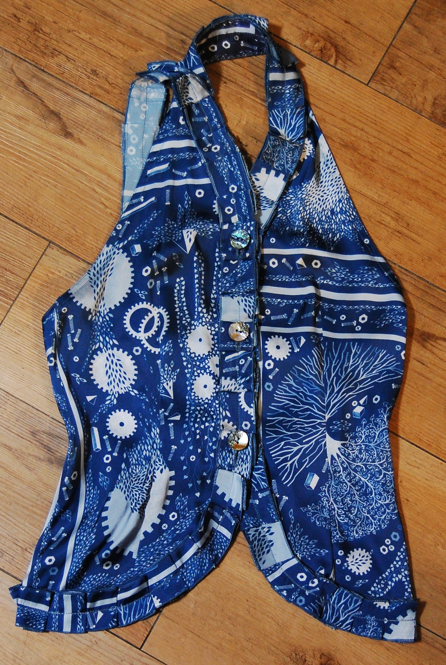 オリジナル図案「アニミズム柄」のベスト。