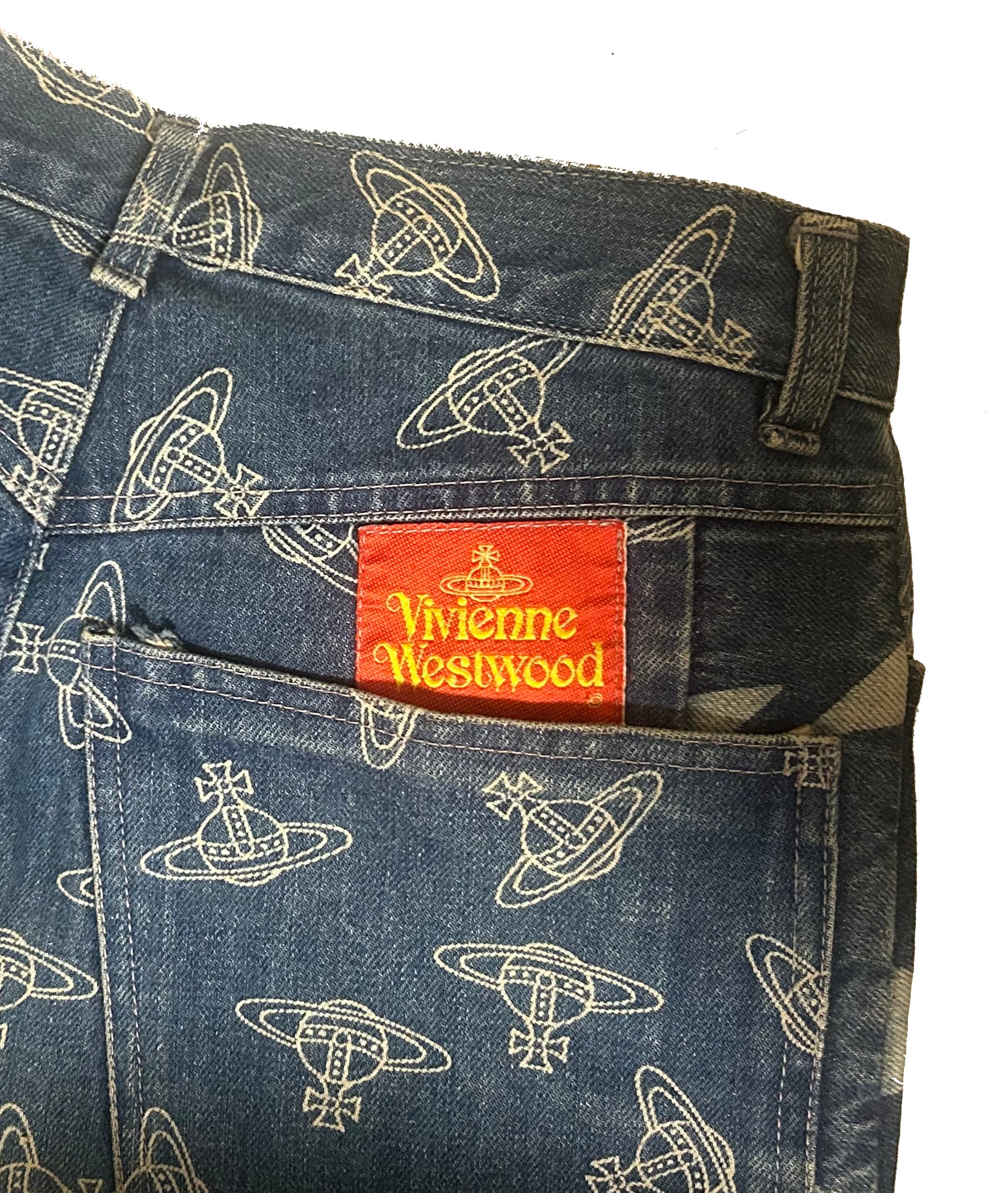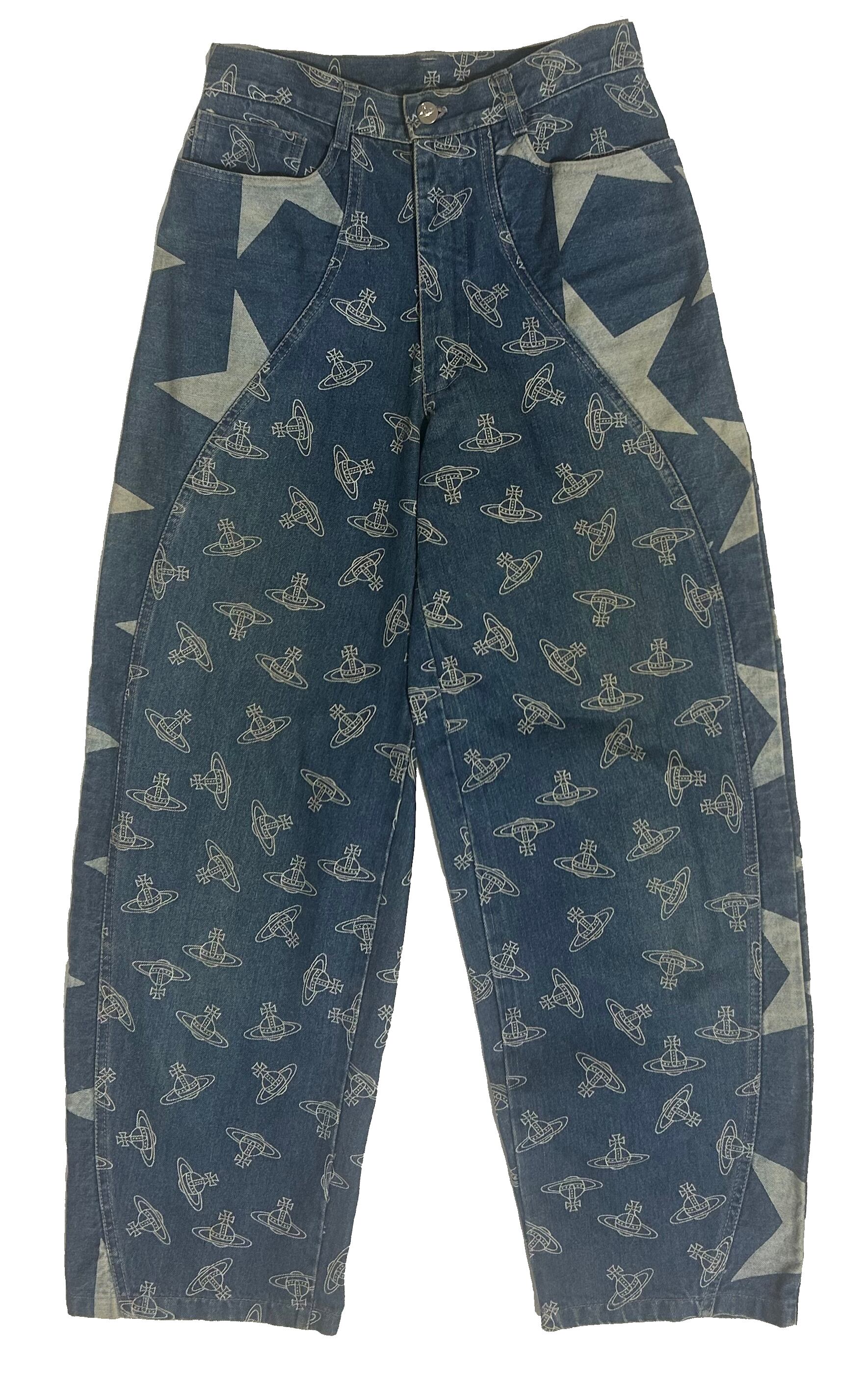 [レトロ 希少] Vivienne Westwood ORB+スター 着抜染 デニム パンツ 赤タグ 1988/89SS