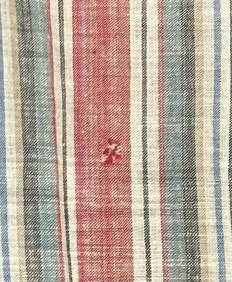裏地は、補強を兼ねて黒い薄生地が表生地と一緒に縫い込まれています(写真4)。
